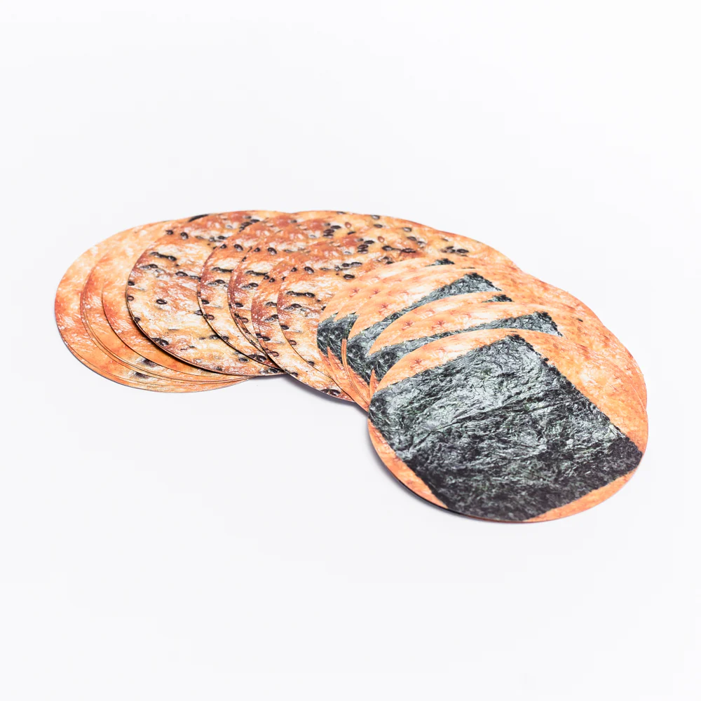 Small round memo pad designed with rice cracker. Variety of usage such as memo, wrapping and collage. 3 designs in 36 sheets.