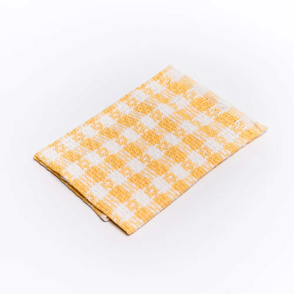 100% cotton dish cloth with gingham pattern.