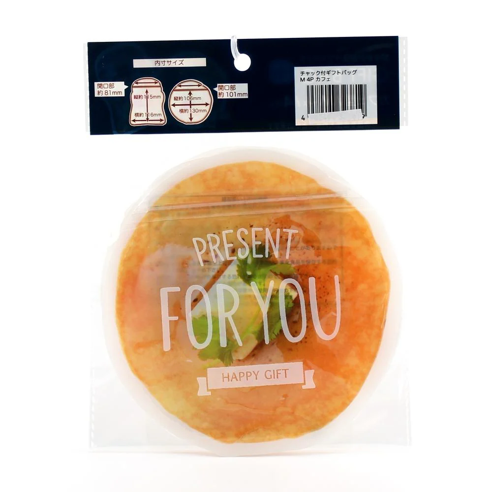 Size: Toast 16.3x1.3cm, Pancake 4.5x14.5cm. Available in toast and pancake die cut designs. Do not use in microwave or oven. The bag can be used for food but not for long term storage.