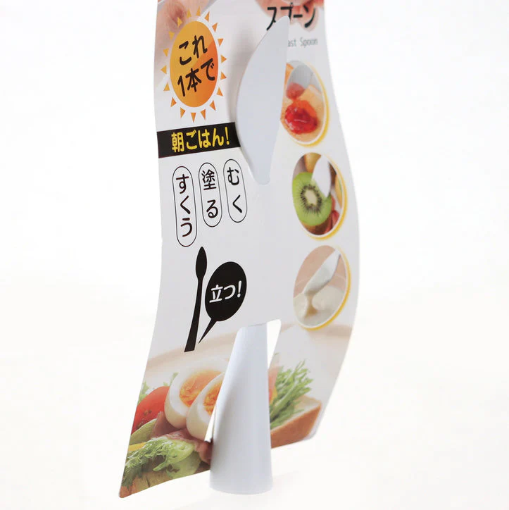 Wonderfully convenient to have breakfast spoon. Multi purpose spoon with which you can remove the shell of a hard boiled egg, spread jam on toast or scoop out the insides of fruit. No need to worry about hygiene as this is a free standing spoon. Not microwave or dishwasher safe. Made in Japan.